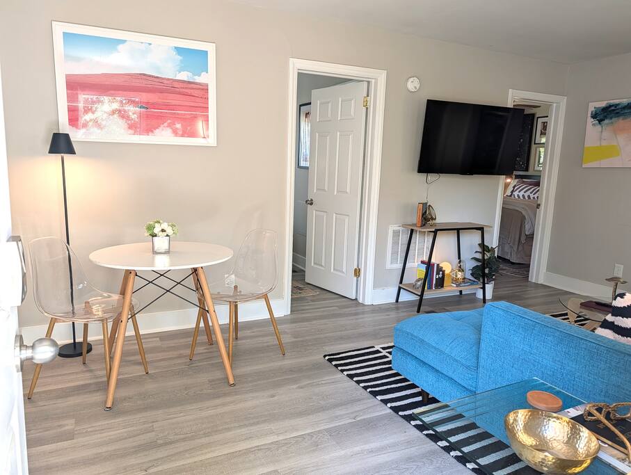 Welcome to your 630-sq-ft slice of the Queen City! This 2-BR, 1-BA home is a masterclass in spatial awareness — ideal for guests who think “open concept” should apply to walls, privacy, and life choices. Situated in the artsy-meets-suburban wonderland of Plaza Shamrock, you’re minutes from Midwood or NoDa — where every drink comes in a mason jar, every dog has an IG account, and you'll find yourself saying, “Wait, this used to be a house?” at least once.